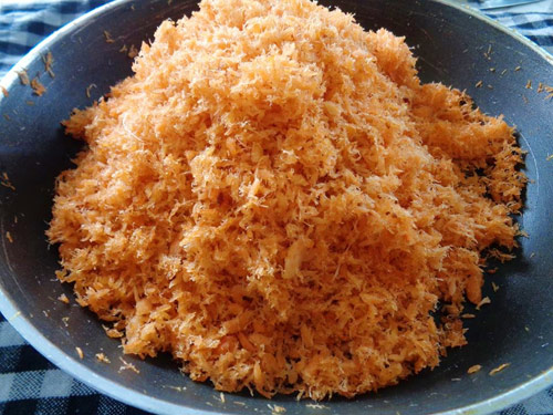 Cá sau khi xào tơi - khô sẽ có màu rất đẹp. Chờ ruốc cá hồi nguội cho vào hũ, đậy kín và bảo quản nơi thoáng mát.