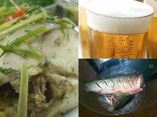 - Món cá hấp bia chấm với mắm gừng tỏi ớt hoặc ăn kèm với bún tươi cực kỳ ngon miệng. Lưu ý nên ăn ngay khi còn nóng để cá thơm, ngọt đậm và không bị tanh.