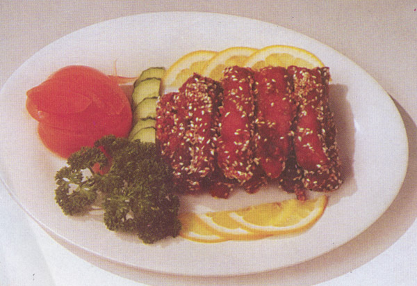 2. Cá sau khi ướp thấm thì cho vào chảo dầu nóng chiên vàng đều, vớt ra để ráo dầu. Chiết bớt dầu dư trong chảo ra, cho sa tế cà chua, đường, muối vào, nấu sôi lên thí cho bột năng vào để nước sệt lại, cho cá vào đảo đều, rắc mè lên và múc ra đĩa.