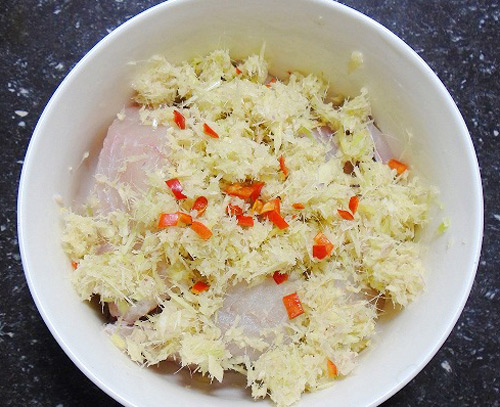 Bước 3: Cho sả, ớt ướp cùng với cá.