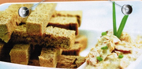 - Làm nóng lò nướng trước 15 phút ở nhiệt độ khoảng 160-170 độ C. Sau đó cho bánh mì vào nướng khỏang 5 phút. Dùng kèm với sốt cá ngừ đã pha chế.