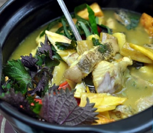 - Cho gừng, hành, tỏi, lá tía tô, vào nồi cá lăn, sau đó cho rượu và nước dùng vào nấu sôi, nêm gia vị, nấu từ 3-5 phút rồi cho tiêu, dầu mè, và nước bột năng vào cho sền sệt là được.