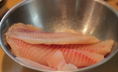 Bước 1: Cá làm sạch, lọc bỏ xương và da (cá thu chỉ có xương sống, không có xương dăm nên lọc rất dễ). Xong thì thái nhỏ thịt cá thu và nêm thêm muối, nước mắm, chút tiêu vào ướp khoảng 10 phút.