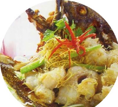 - Cá song sau khi rửa sạch lóc lấy phi lê và da. Làm nóng chảo dầu, cho da cá vào chiên giòn.