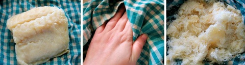 Cho hỗn hợp cá tuyết vào hai cái thìa, rồi miết lại để tạo hình (hoặc bạn có thể dùng tay nắm lại).