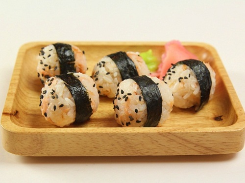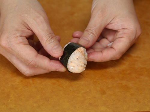 Bước 4: Cắt rong biển thành các dải dài rồi quấn quanh miếng cơm nắm là được.