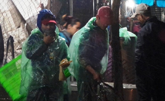Chiếc áo mưa quấn quanh người chẳng đủ làm ấm cơ thể chị. Chốc chốc, chị lại đưa hai tay xoa vào nhau để tìm chút nhiệt sưởi ấm cho mình.